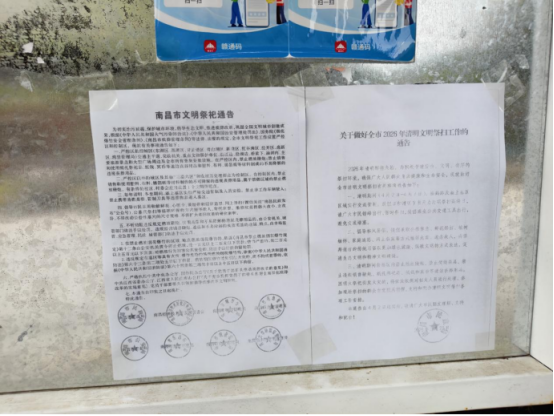 此外,社区同步通过公告栏、居民微信群等渠道,广泛普及文明祭扫知识,大力倡导鲜花祭扫、网络缅怀、家庭追思、无烟祭扫等绿色方式,引导居民自觉摒弃焚烧纸钱、燃放鞭炮等陈规陋习,营造文明节俭、绿色环保、平安有序的清明祭扫氛围。