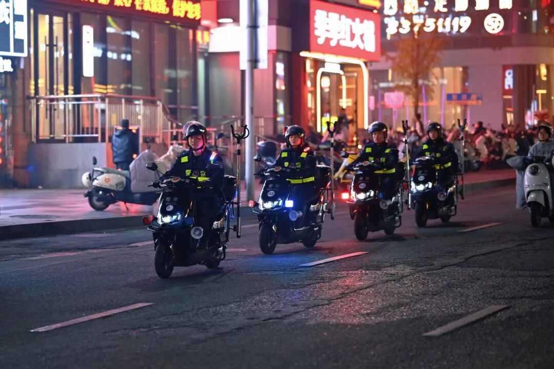 在核心商圈和繁华夜市,闪烁的肩灯与巡逻车灯构成了一道道流动的安全标识。作为巡防体系的核心尖刀,机动巡防处突队承担着辖区主次干道、重点区域、人流密集区域和易发高发案区域的巡防处突任务。这支队伍实施“步巡、犬巡、警用摩托车巡、警用电动自行车巡、车巡、无人机巡”六位一体的智慧巡防模式。